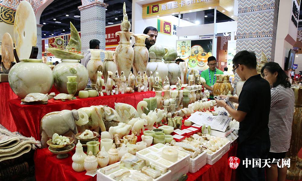 本届东盟博览会还有来自巴基斯坦的参展商,带来了许多精美的玉石工艺品和铜器(摄影:刘英轶)