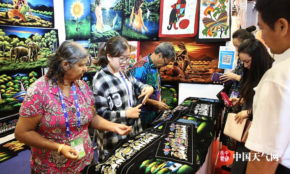 市民在认真挑选斯里兰卡参展商带来的布画和宝石画(摄影:刘英轶)