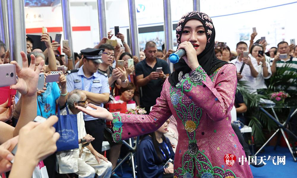 文莱是今年中国—东盟博览会“主题国”,除了歌舞表演之外,还展示了本国的服务业、教育、制造业、保健与化妆品、食品饮料、手工艺品等(摄影:刘英轶)