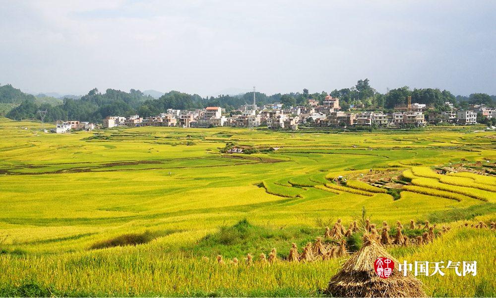 16日,芒场镇蛮坝村稻黄丰收如画(摄影:黎玉梅)