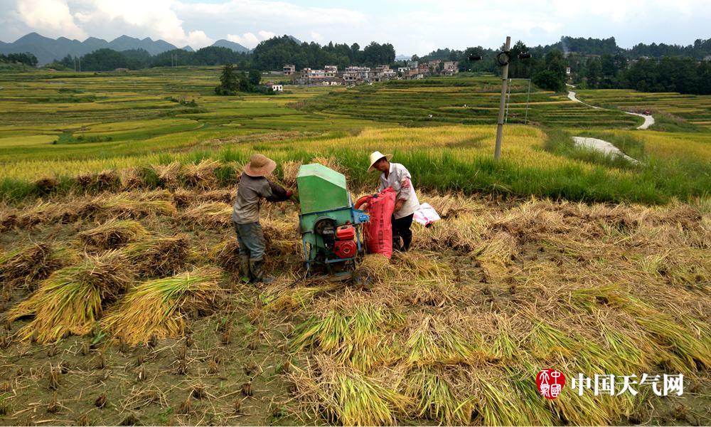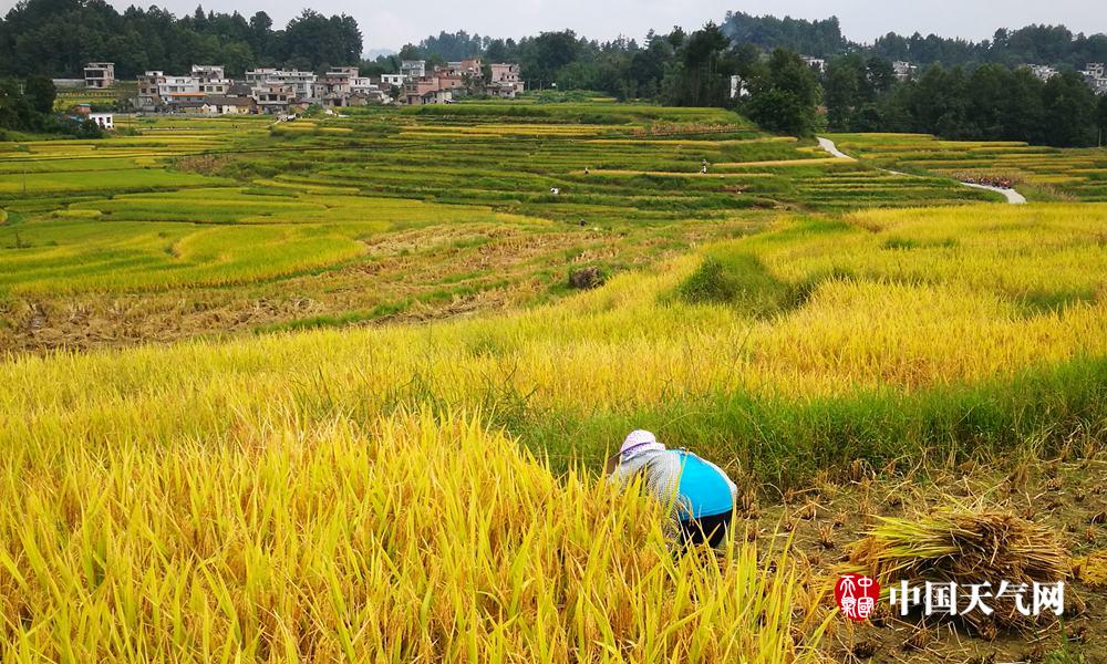稻谷成熟,田野间呈现出一幅美丽的秋收画卷(摄影:黎玉梅)