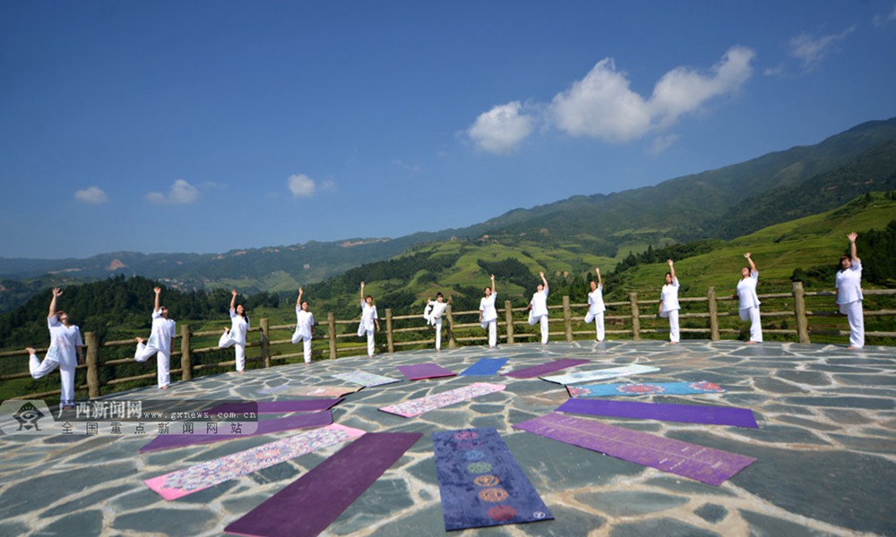 瑜伽爱好者在龙脊梯田景区练习瑜伽(摄影:潘志祥)