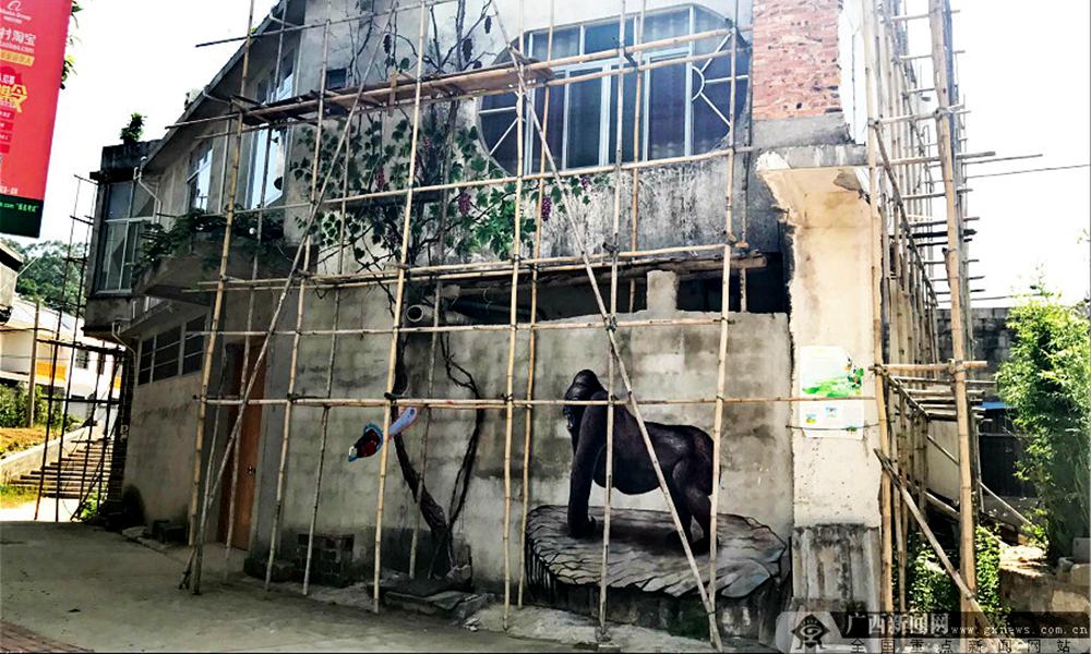 在旧房基础上以人与自然为主题进行艺术墙面创意。广西新闻网 记者蒙灵摄
