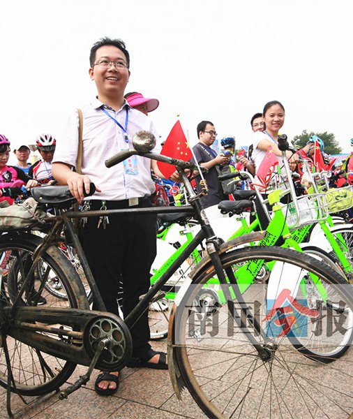 36岁的谭先生准备骑着这辆老凤凰参加骑游。