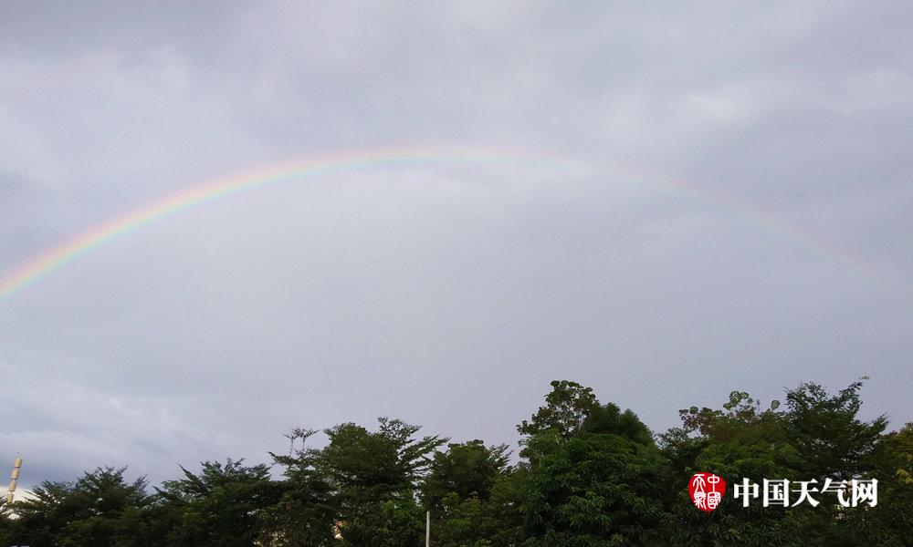 来宾雨后天空出现彩虹(摄影:潘田凤)