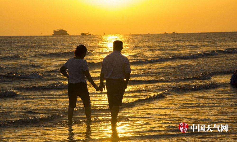 恩爱老夫妻携手逛海滩(摄影:卢威旭)