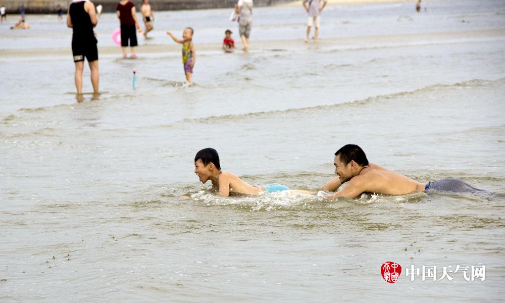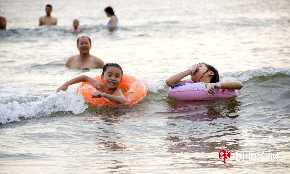 小朋友在浪里玩得欢快(摄影:卢威旭)
