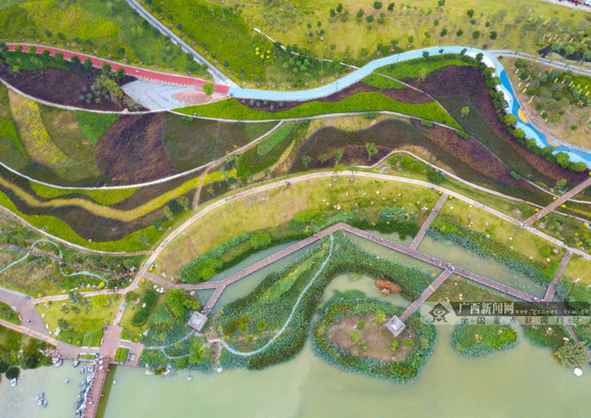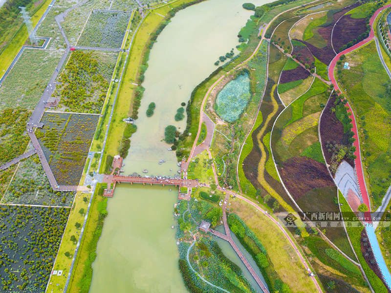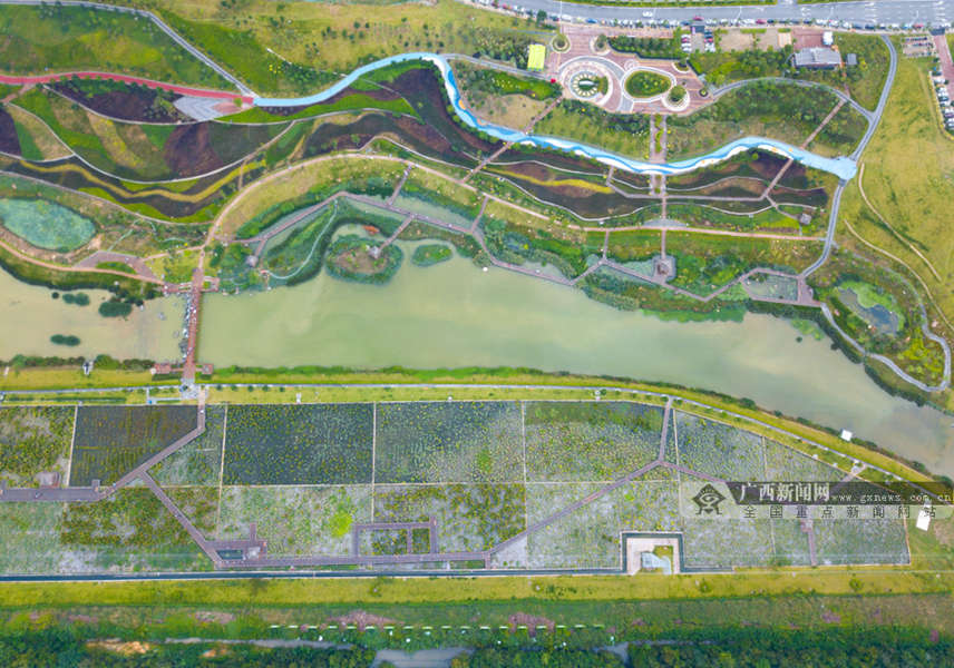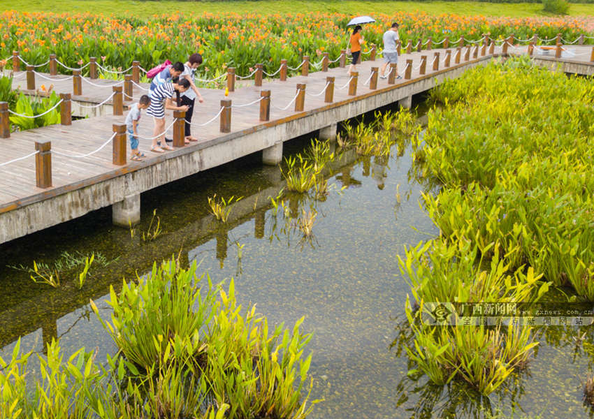 那考河湿地公园绿树繁茂、鲜花绽放,景致优美宜人。(摄影:黄河畅)