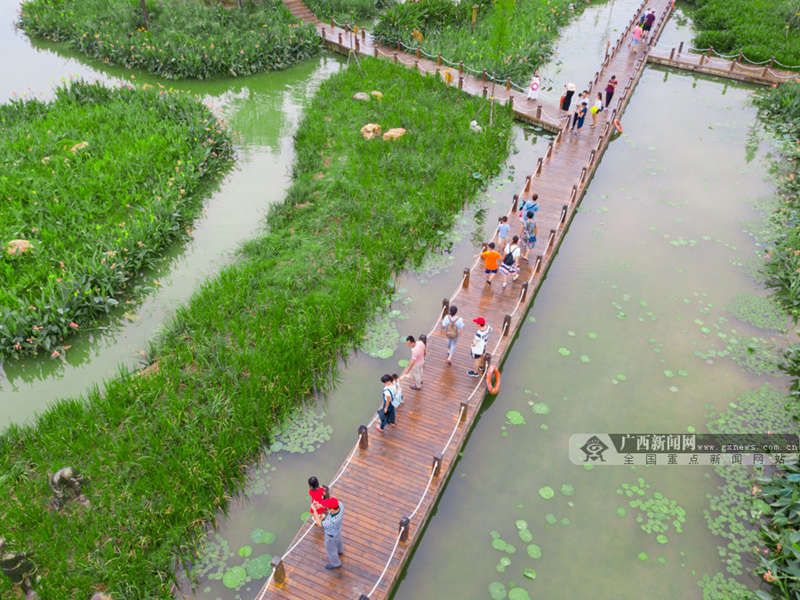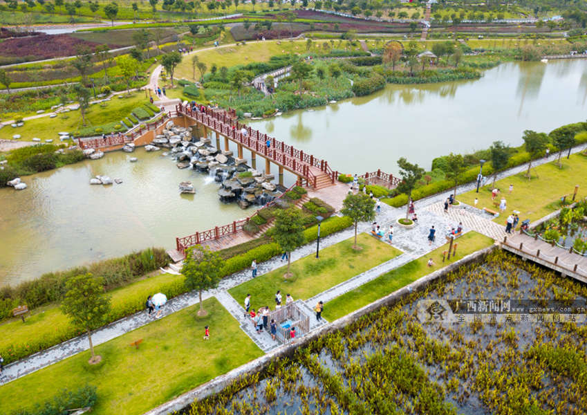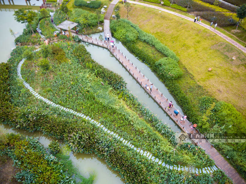 那考河柳绿桃红、水清岸绿的湿地公园景观,成为市民休闲娱乐的好去处。(摄影:黄河畅)
