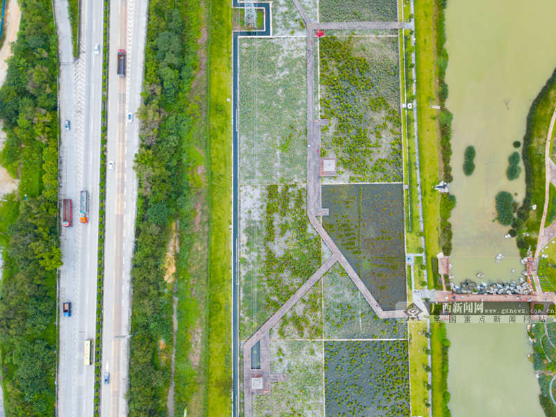 人造景观与绿色植物交相辉映。(摄影:黄河畅)
