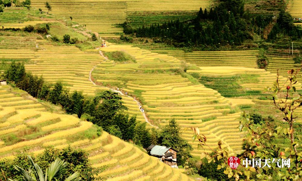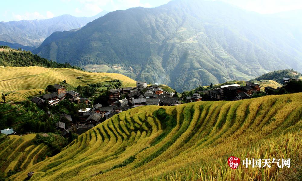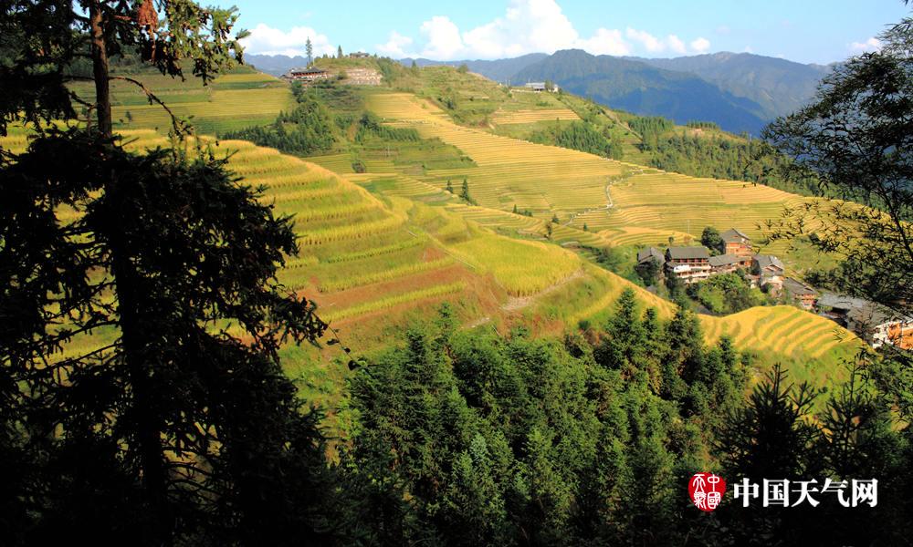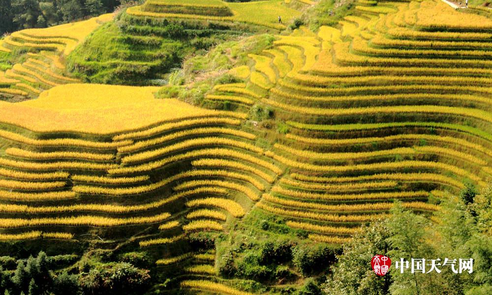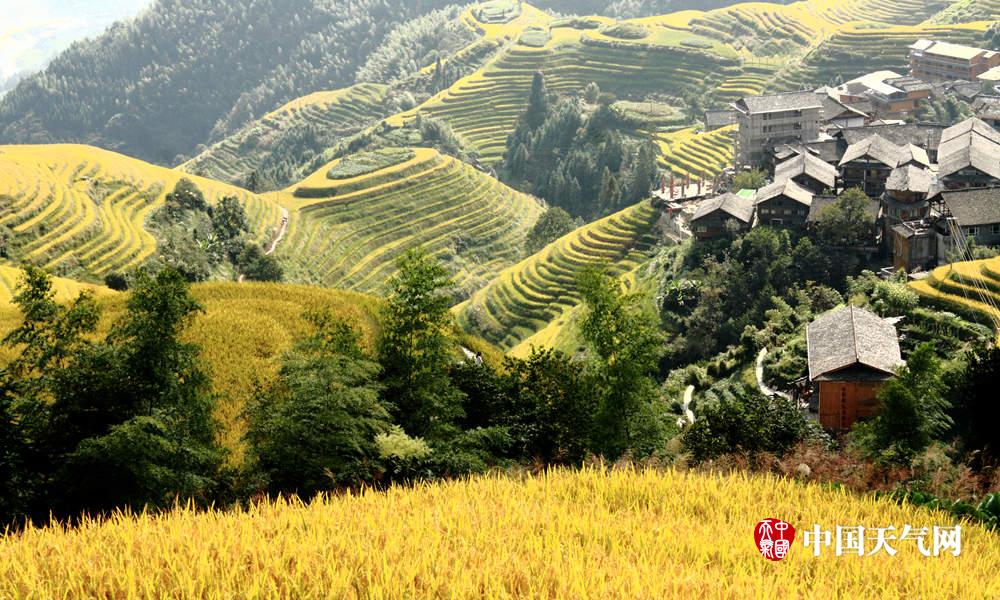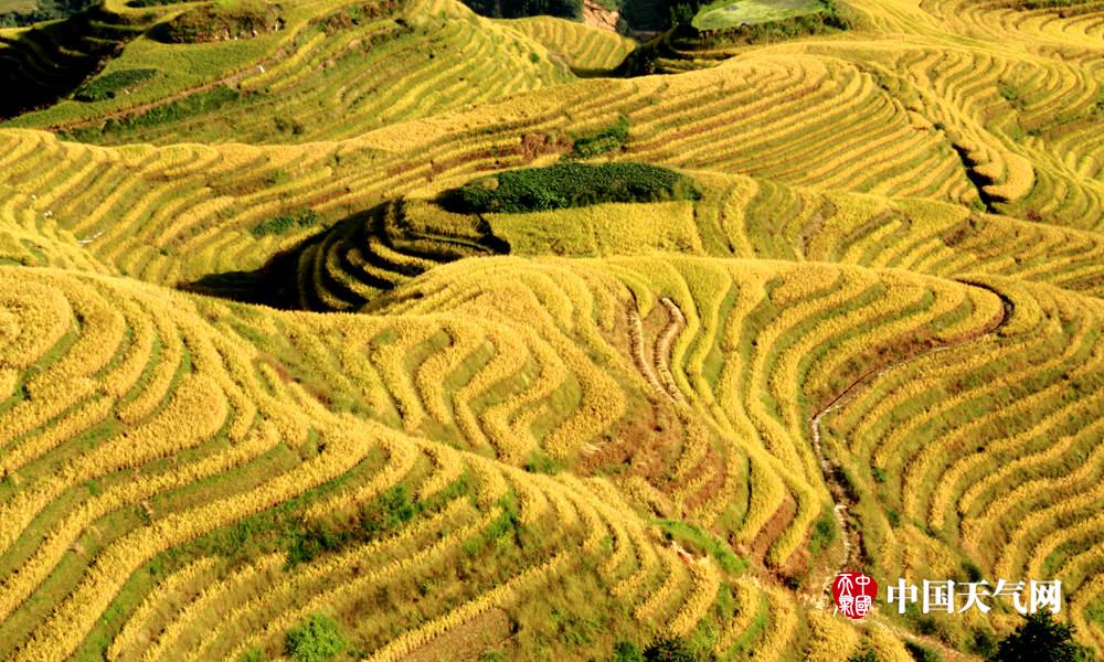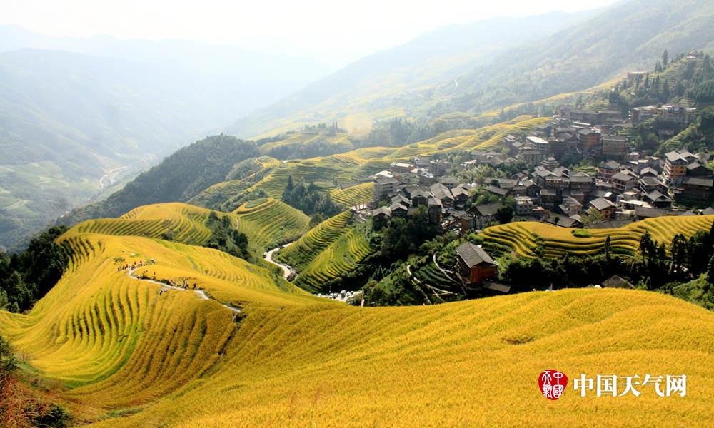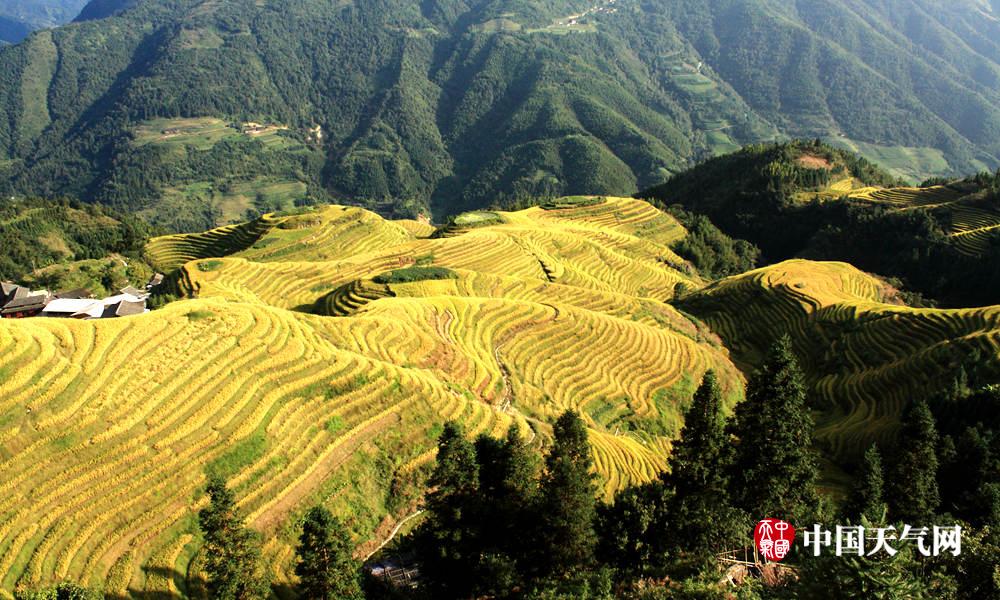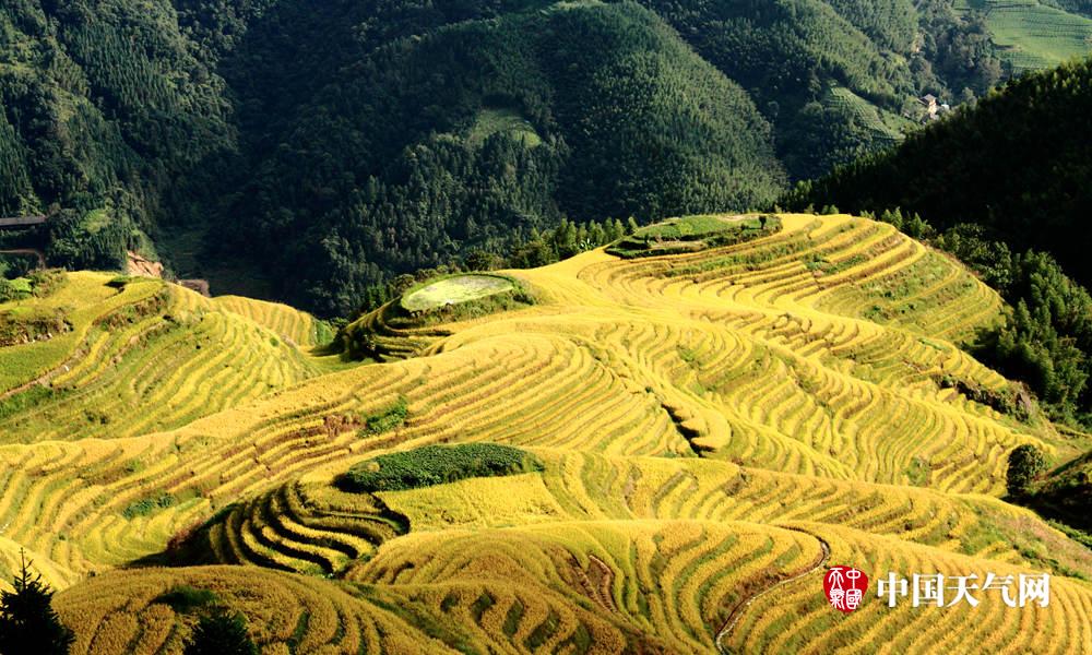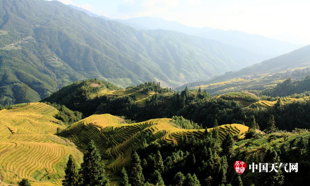 10月7日,镶嵌在龙胜山脊的金黄色“地毯”(摄影:伍钊)