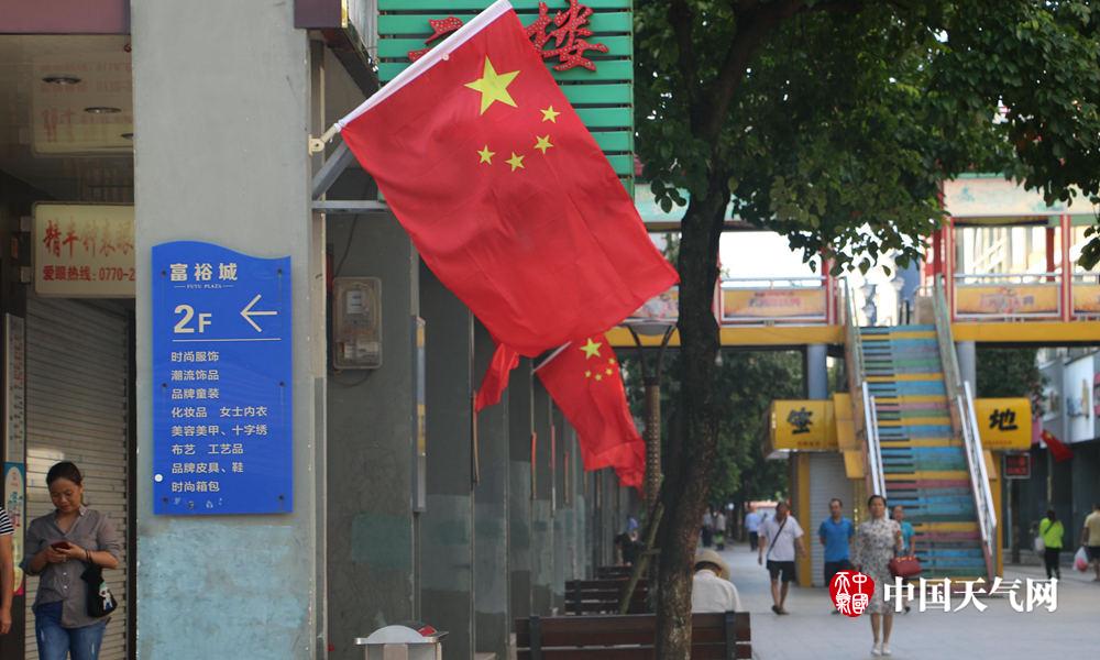 防城港步行街的五星红旗迎风飘扬(摄影:林文桦)