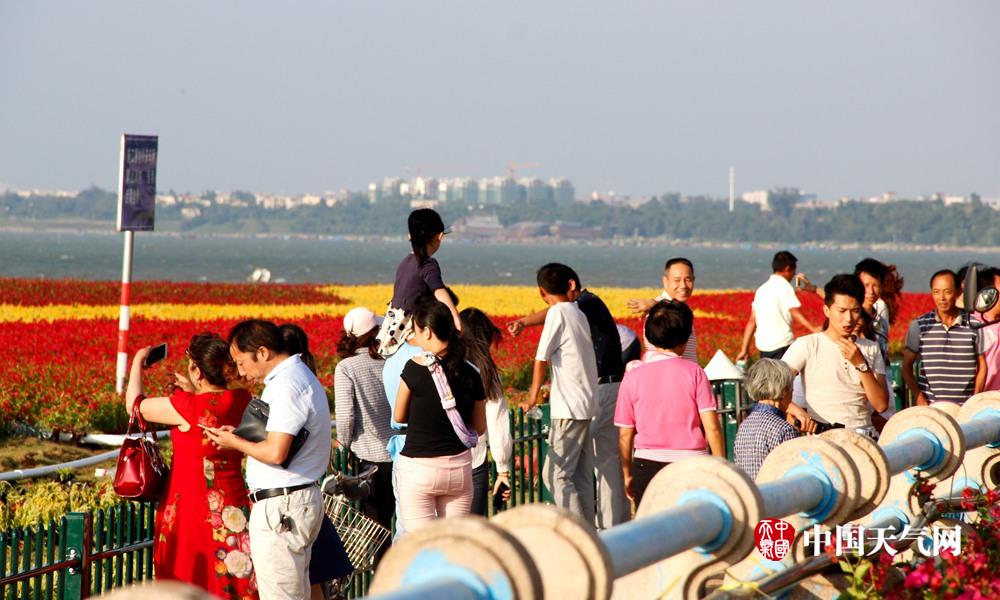 游客来花圃拍摄留念。(摄影:卢威旭)