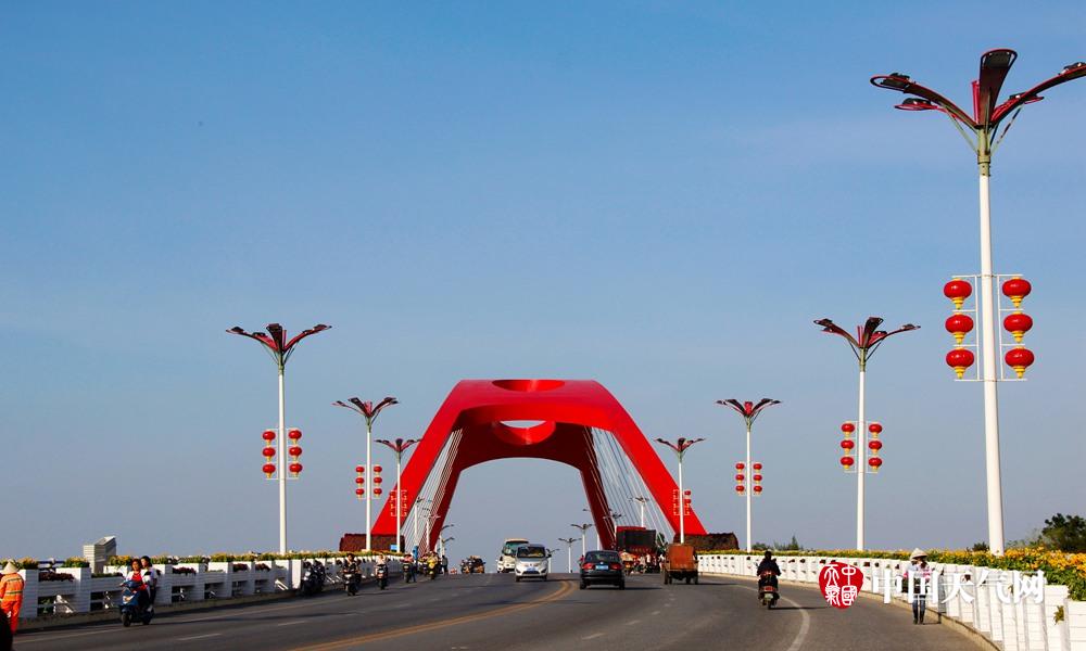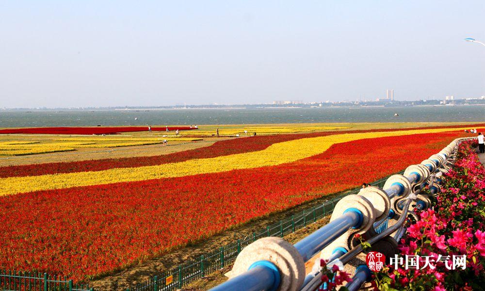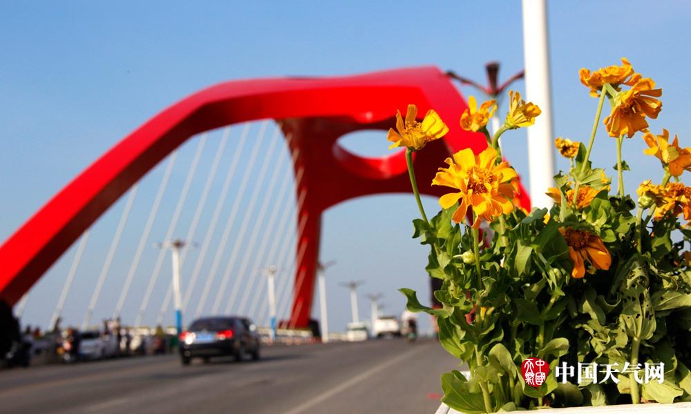 高德大桥旁的广场放满了鲜花,布置成北海的一个大花圃。(摄影:卢威旭)