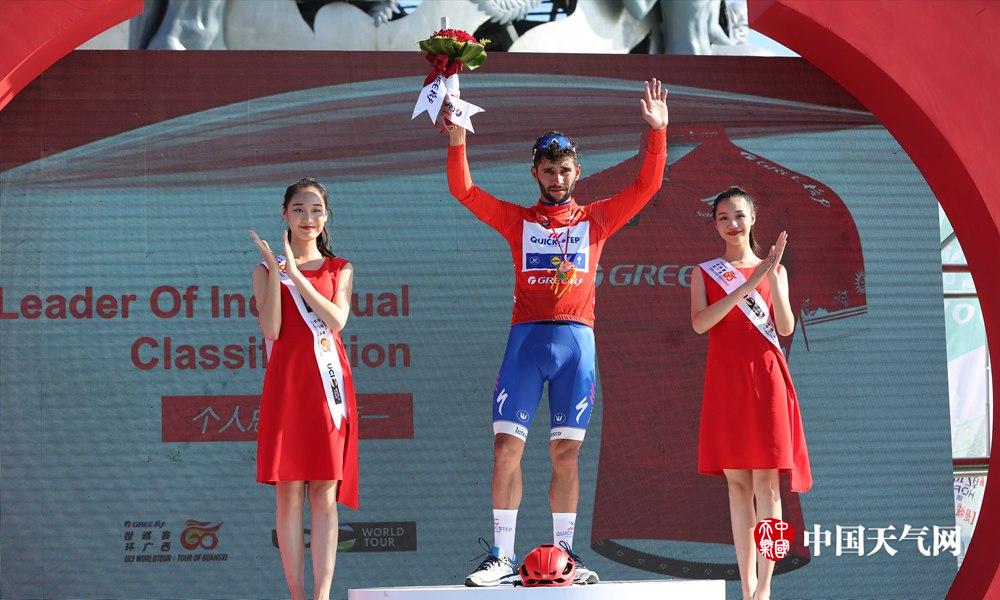 赛段冠军、总成绩“格力”红衫、最佳年轻车手“李宁”白衫:快步车队加维利亚(摄影:刘英轶)