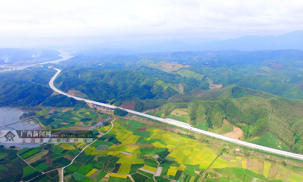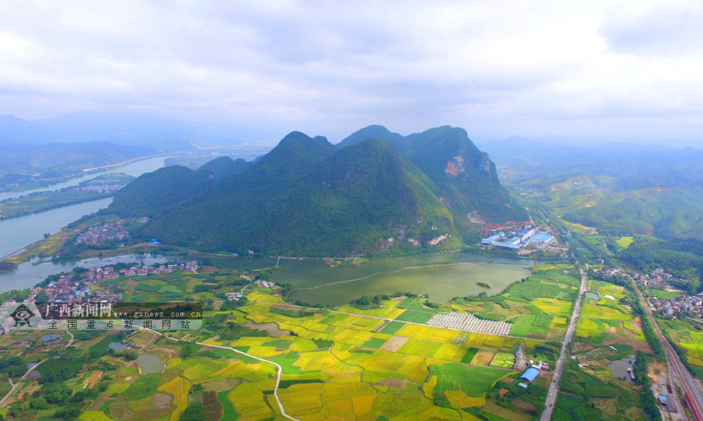 笔者用无人机航拍融安县潭头乡新桂村金色田园风光。(摄影:谭凯兴)