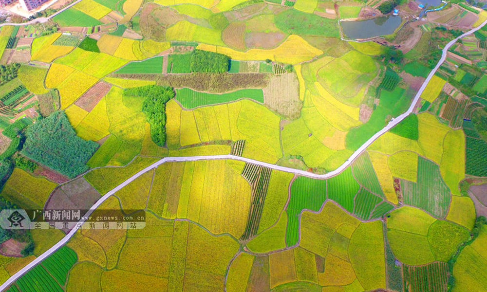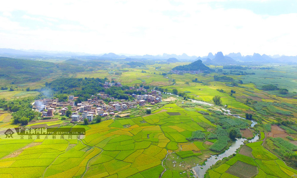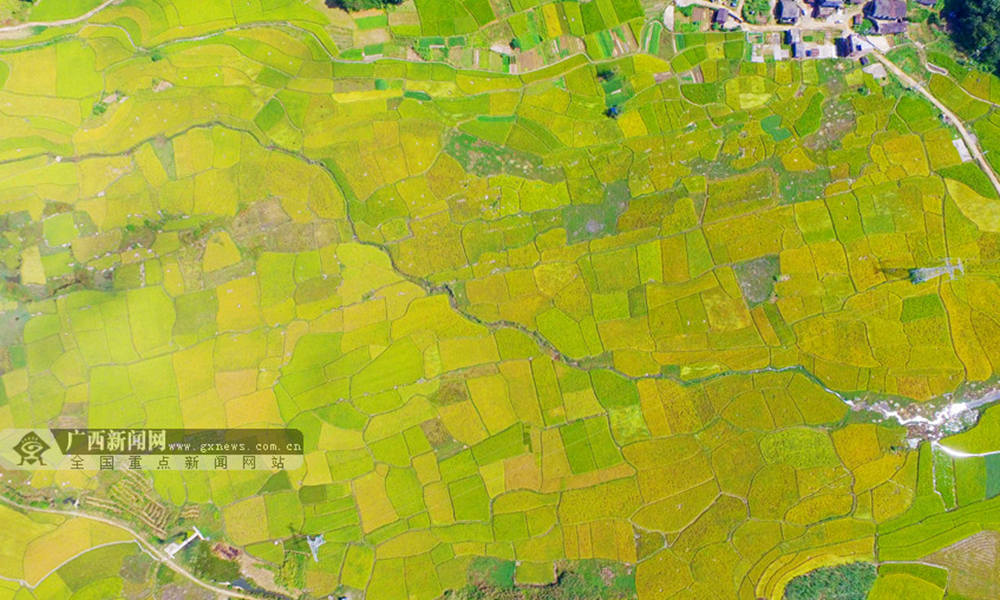 笔者用无人机航拍融安县浮石镇隘口村拍摄金色田园风光。(摄影:谭凯兴)