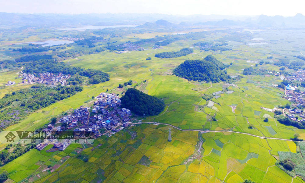 笔者用无人机航拍融安县潭头乡新林村金色田园风光。(摄影:谭凯兴)