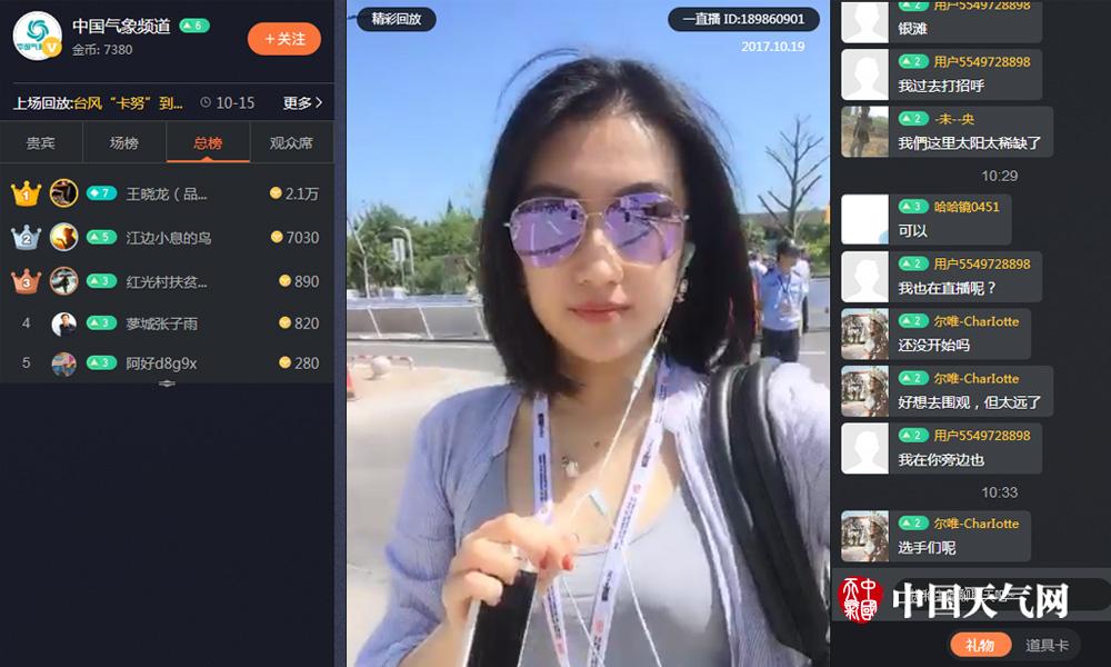 盛颖凡,中国气象频道主播。赛事期间,她通过一直播,为无法亲到现场的观众朋友们送去比赛情况,让网友第一时间感受到现场气氛,并与网友亲切互动交流。其中,在北海侨港海滩直播了日落时分的美景;在桂林,向网友介绍了桂林三宝(辣椒酱、豆腐乳、三花酒)、啤酒鱼、油茶等特色美食和小吃。