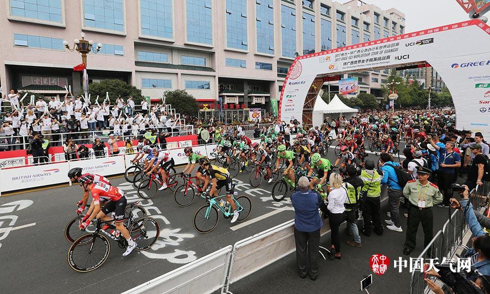 2017年19-24日,2017环广西公路自行车世界巡回赛在广西举办。从北海开始,途经钦州、南宁、柳州,最后在桂林落下帷幕。赛道从南到北纵贯广西,穿越平原、丘陵和山地不同地貌,因此天气变化和不同气候对车手们比赛有很重要的影响。这次“世巡赛·环广西”,广西气象局派出一个气象应急保障小组,广西天气网和中国气象频道也派出新闻报道组,团队作战,实现全媒体、多载体全程报道赛事和气象保障服务工作,也让我们近距离感受了广西之美、体育之美和自行车运动之美。(摄影:刘英轶)