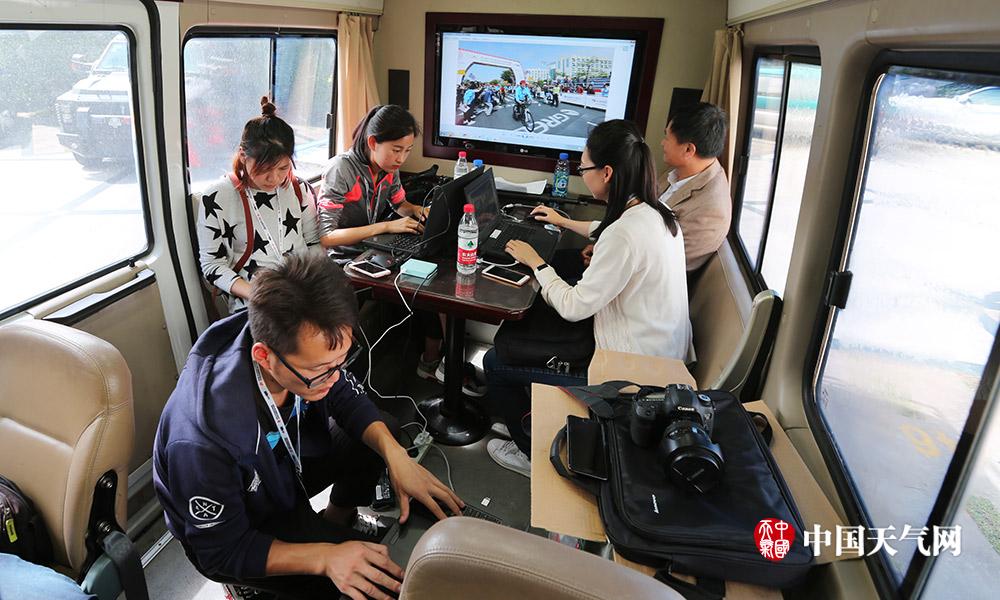 很多时候,气象应急车还变身“保姆车”,是我们工作、吃饭和休息的场所。通过应急车连接网络,我们能将编辑好的视频、图片和稿件及时回传和发布。(摄影:高钰杰)