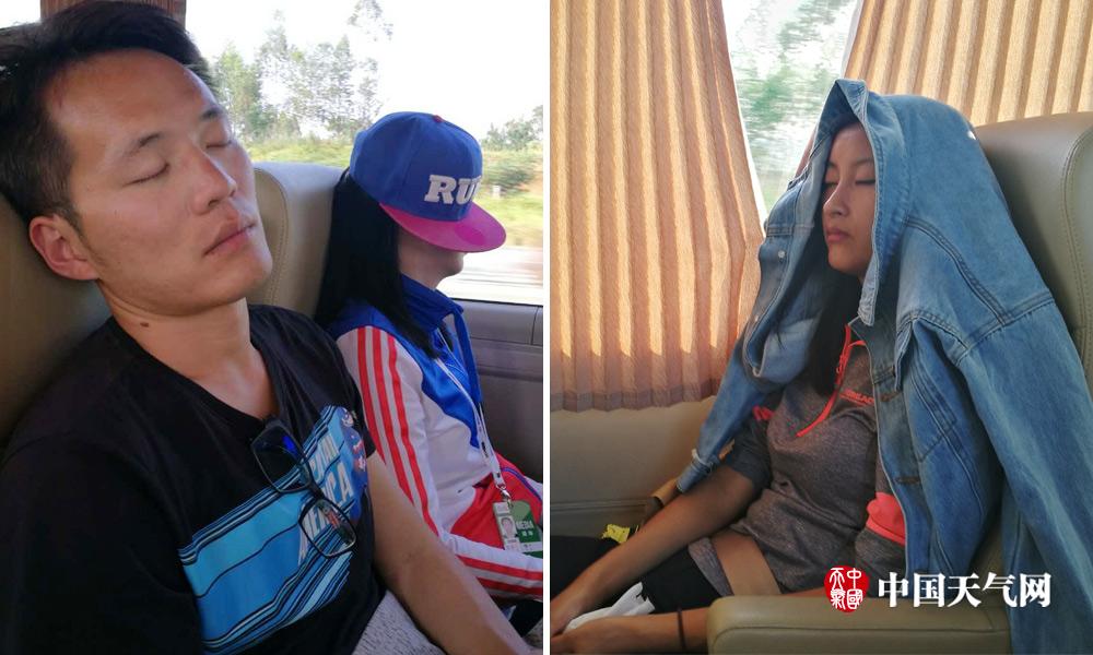 连日的奔波,起早贪黑的报道和撰写新闻稿件,使我们感到非常疲惫,只能抓紧时间,在转场的途中稍微休息一会,恢复下体力(摄影:刘英轶 张娜)
