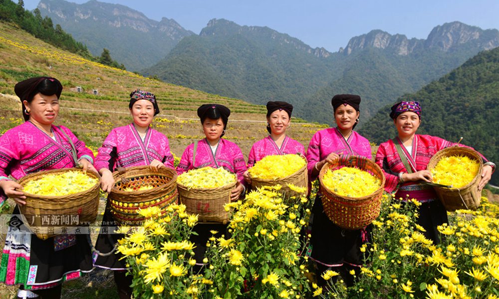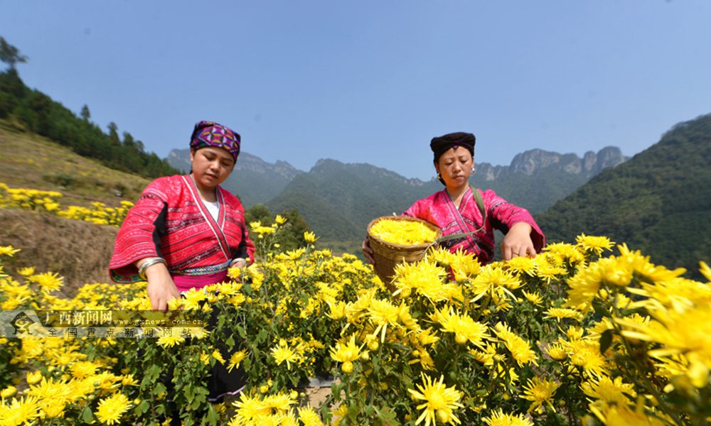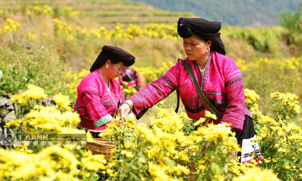 当地瑶族群众在采摘皇菊。(摄影:潘志祥)
