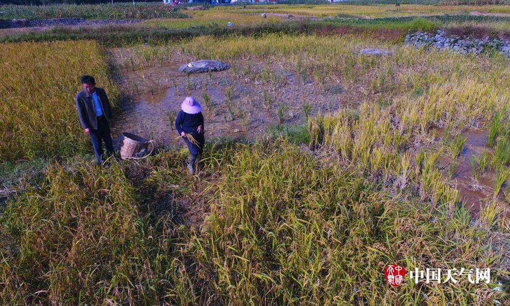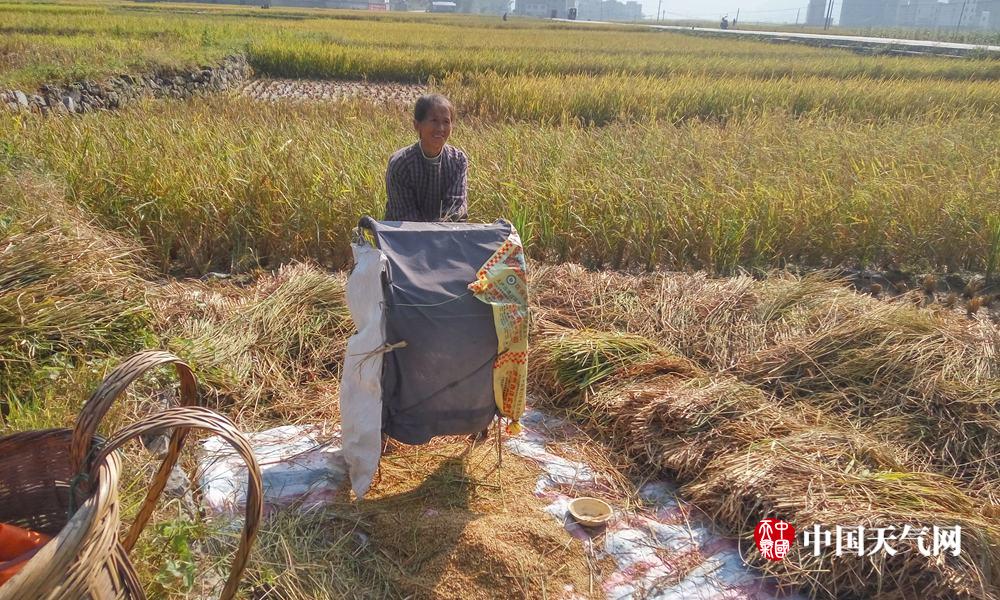 农户抢抓时机收割水稻(摄影:韦家宝)