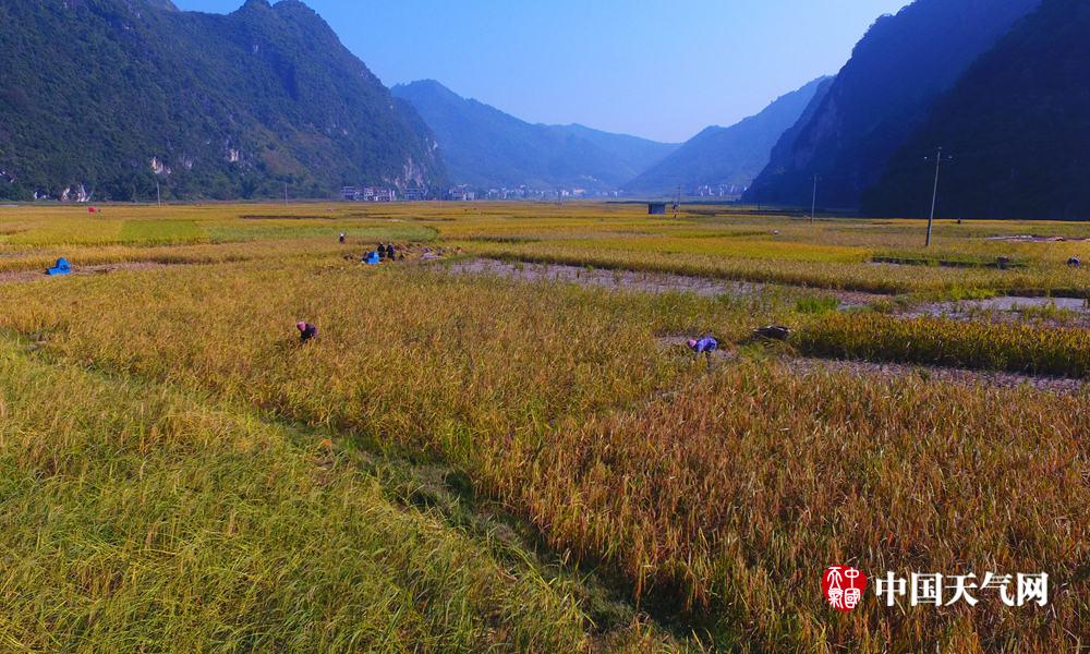 空气里弥漫着一股稻香,田间地头一片热闹的农忙景象(摄影:韦家宝)