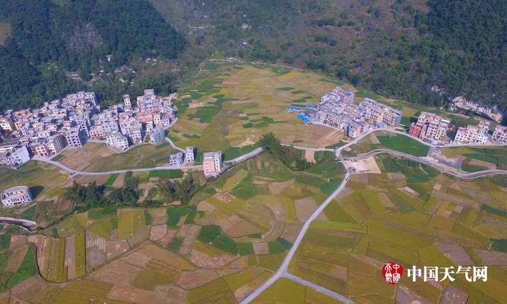 航拍蓝天下兰木乡兴兴向荣的生活(摄影:韦家宝)