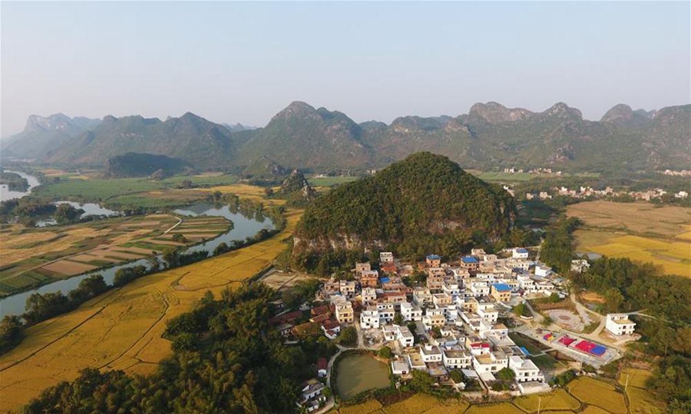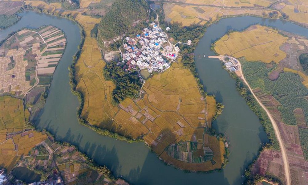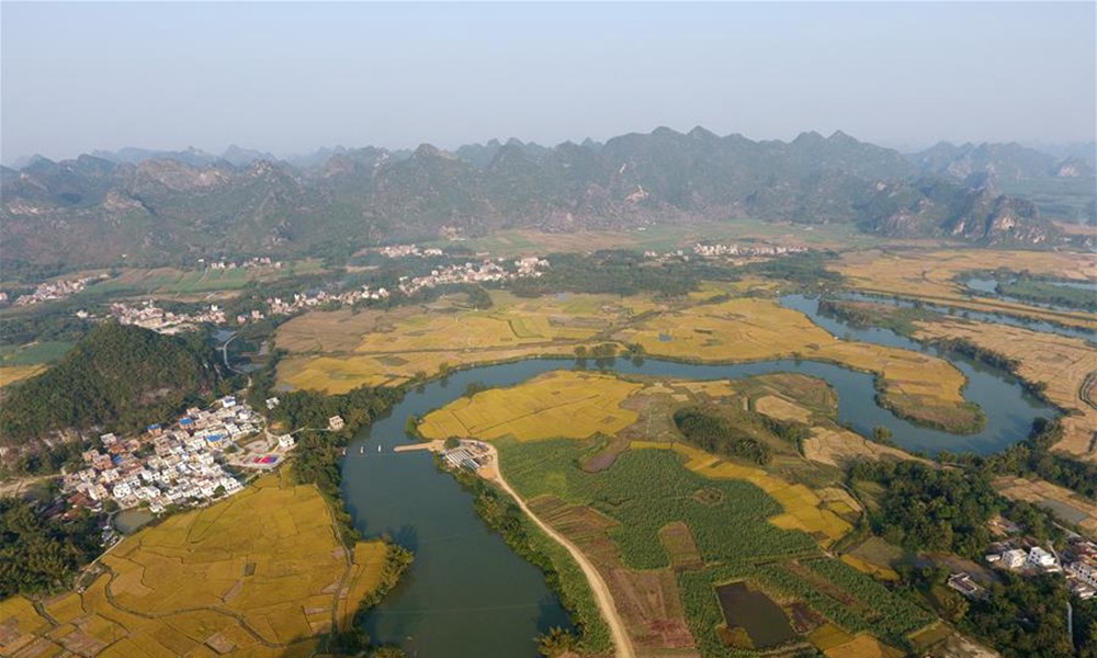 11月2日拍摄的上林县一处稻田及其周围景色。(摄影:陆波岸)