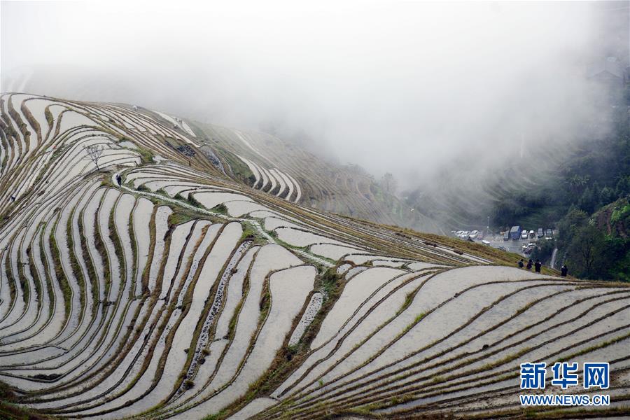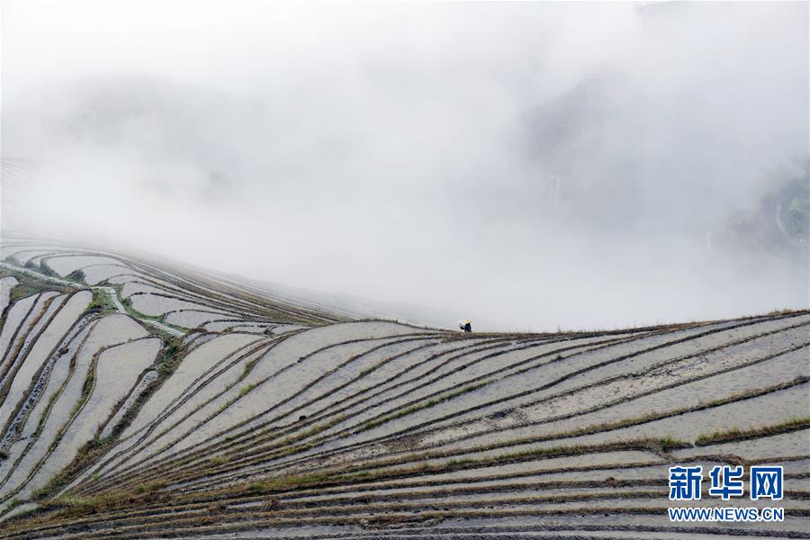 11月17日,广西龙胜各族自治县的龙脊梯田云雾缭绕。(摄影:吴生斌)