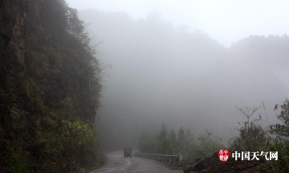 被云雾笼罩的山路(摄影:黄路)