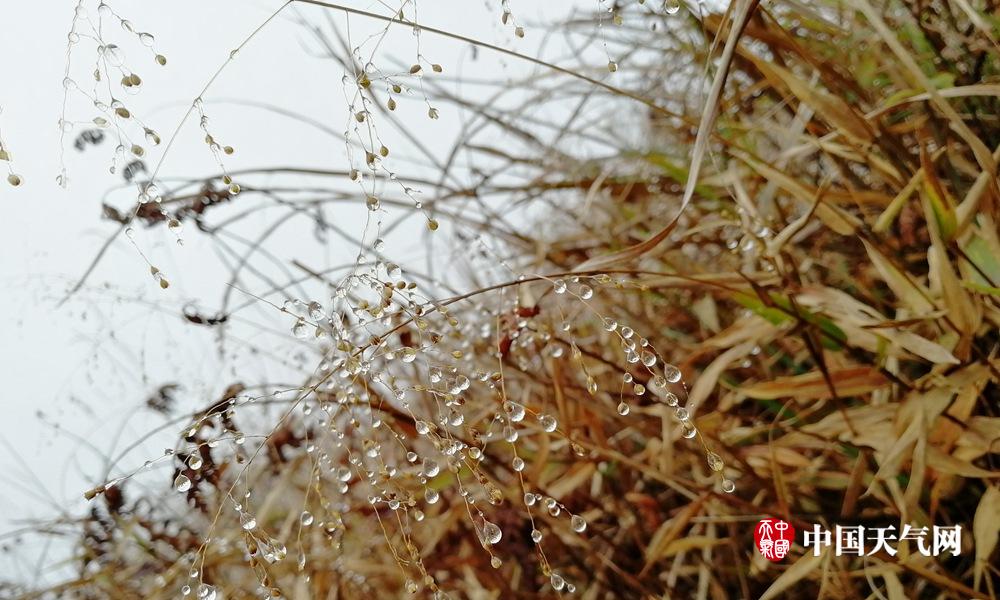 挂满雨水的草叶(摄影:黄智)