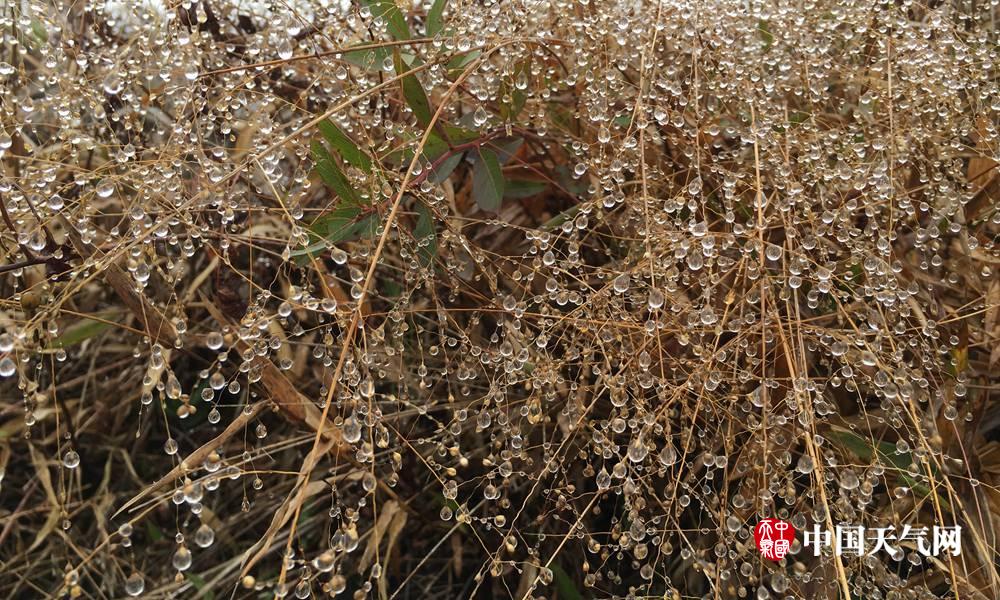 挂满雨水的草叶(摄影:覃君佼)