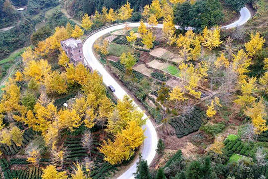 这是12月2日航拍的广西百色市德保县巴头乡红枫林。时下,广西德保县10万多亩枫叶林陆续进入观赏期,吸引了众多游客。 新华社记者 周华 摄