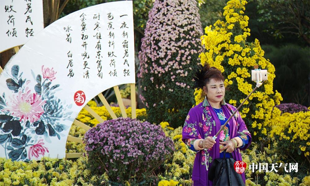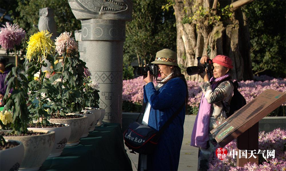 21日南宁阳光普照 摄影爱好者不断寻找着拍摄角度,只为拍出菊花的美(摄影:刘英轶)