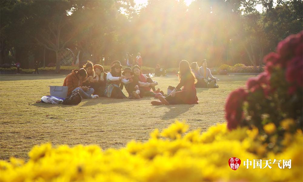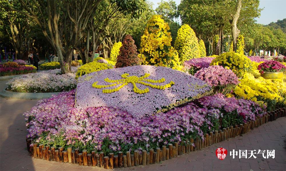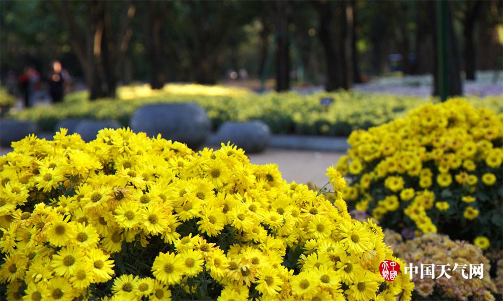 21日南宁阳光普照 一棵棵树下,菊花争奇斗艳(摄影:刘英轶)