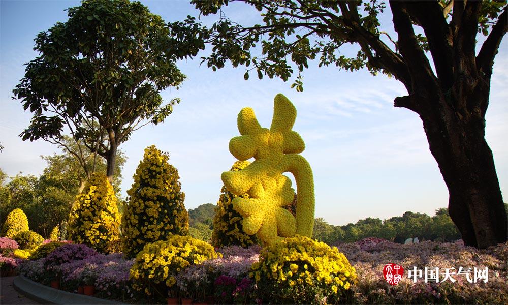 21日南宁阳光普照 用一朵朵菊花制作出“菊”字的造型(摄影:刘英轶)