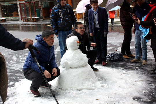 8日早上,柳州三江白云山上冰雪覆盖。(摄影:周林)