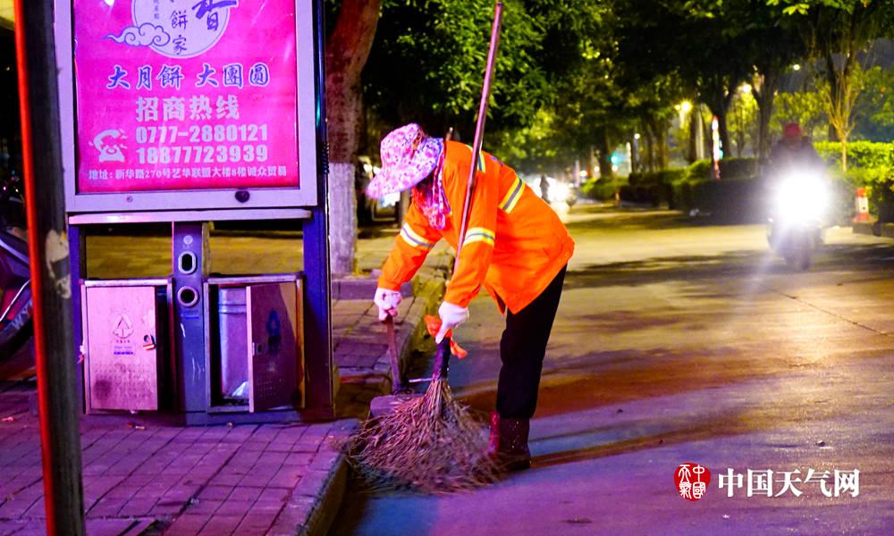 9日清晨,清洁工人在寒风中清扫大街(摄影:李斌喜)