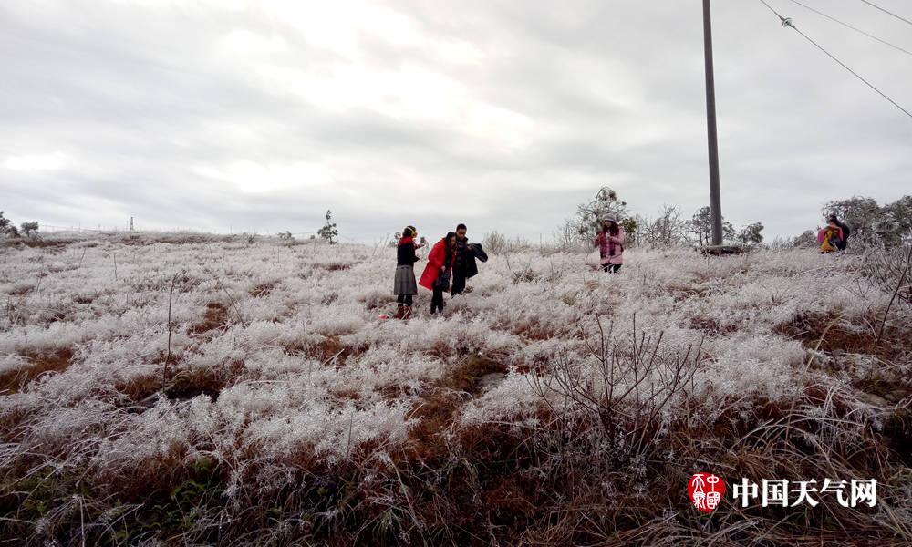 9日早上,金秀银杉草坪一片雪白(摄影:张小娟)