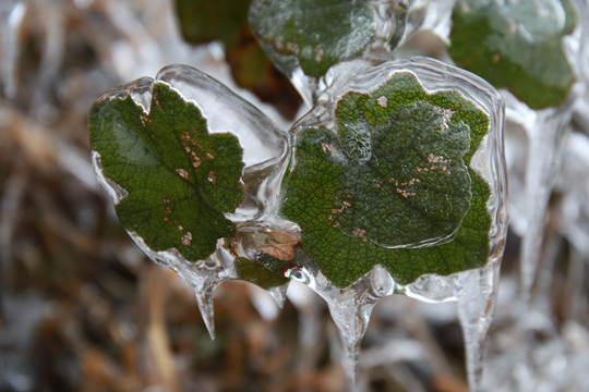 树的枝叶被冰晶包裹(摄影:蔡雨容)