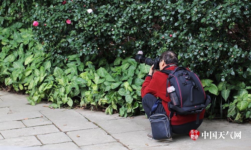茶花盛开,吸引了许多摄影爱好者前来拍照(摄影:刘英轶)