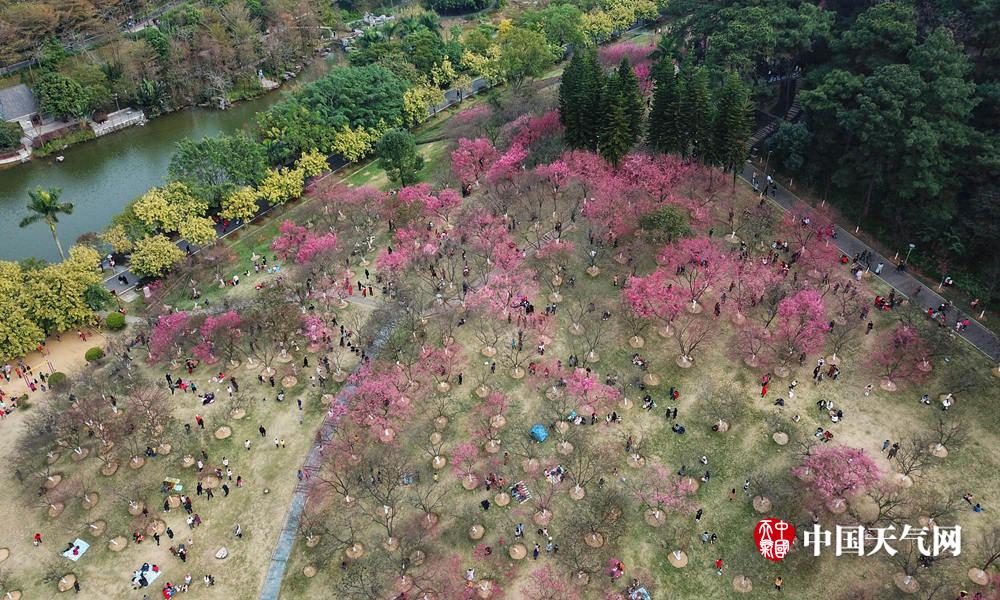 石门森林公园里的樱花又到了盛开的时节,游客络绎不绝。