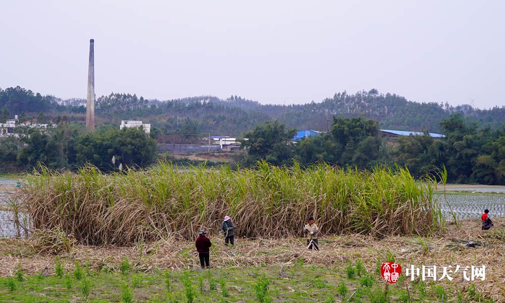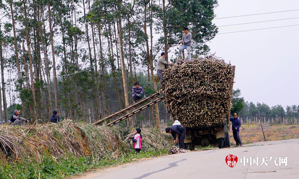 2月4日,农民朋友正在赶收甘蔗。(摄影:李斌喜)