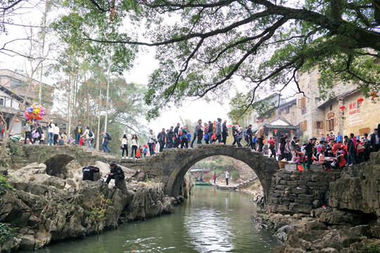 在刘永福故居广场,拍照留影的游人(摄影:李斌喜)