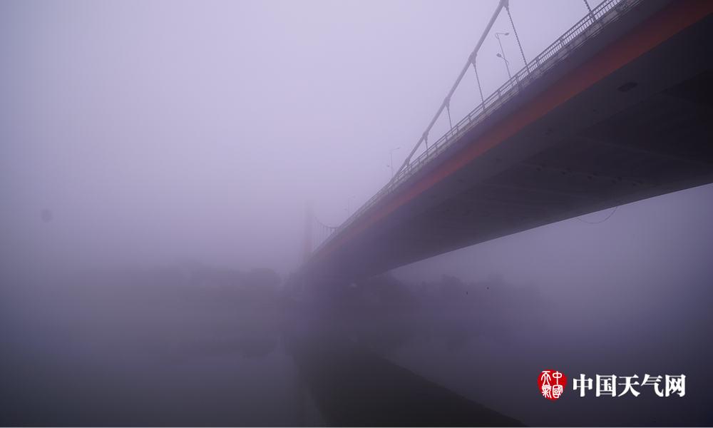 大雾下的钦州四桥,仿佛是通往仙境的神秘通道。(摄影:李斌喜)