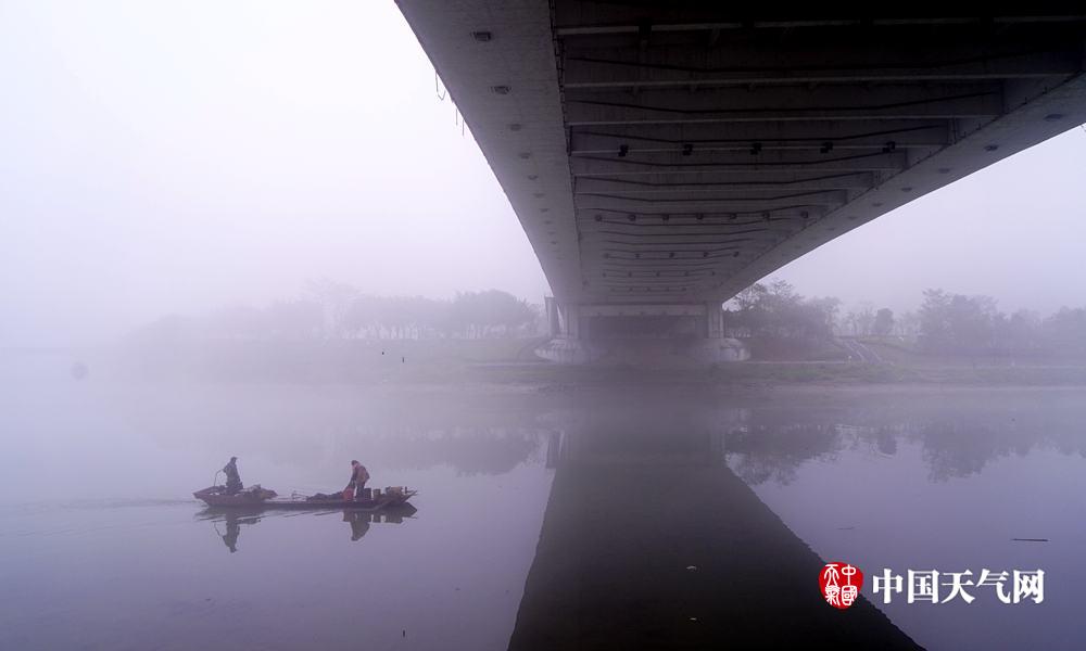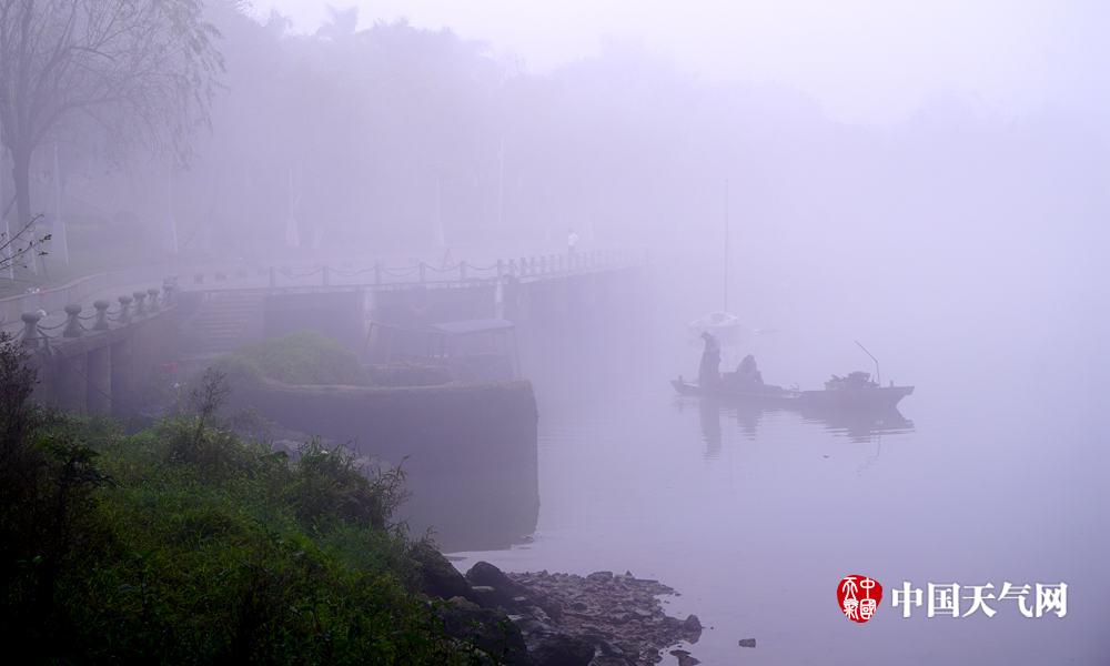 大雾下垂钓者的悠然自得。(摄影:李斌喜)