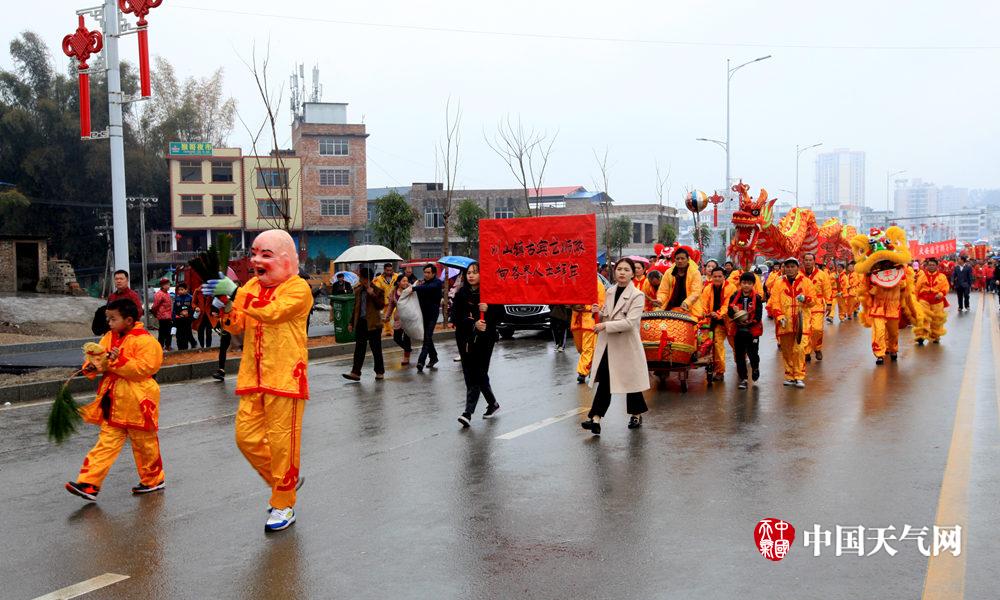 川山古宾代表队向赛场走去(摄影:覃东南)